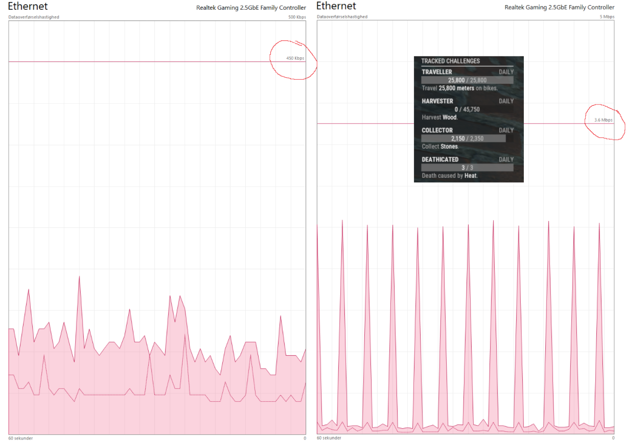 With Tracked Challenges turned on those spikes goes up to a steady 2,5 Mbit .. ..