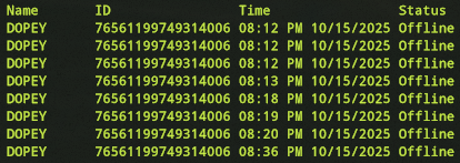 Offender: Farmer Joe BM Steam Server: AU Scourge Time: 13:46 16 Oct 2025 Length: Perm Ban Reason: Cheating (Fly hacking)