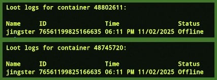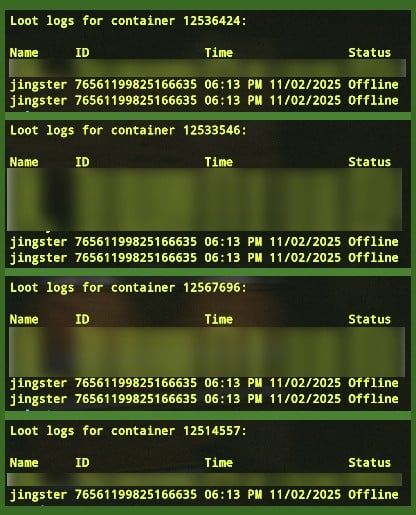 Offender: ThePilote79 Battlemetrics | Steam Server: EU Pure Time: 03/11/25 21:13:27 Expires: Permanent until appealed. Reason: Raiding/Looting More Info: The player received two warnings for their actions within the server. On 12th Feb 2025, they built around another player's base, and on 12th Apr 2025, they were warned for stealing items from unlocked boxes during a public event, which were later returned to the victim. During the October wipe this player achieved the award of raiding every possible base on the entire server. He's also a very bad raider since most of the bases he tried to raid we're perfectly theft proof. Unfortunately he also got in alot of bases and stole lots of loot. They were permanently banned for repeated violations of server rules.