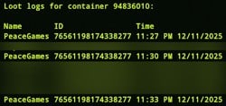 Offender: PeaceGames Battle Metrics Steam Profile Server: (US)Pure Time: 9:18 PM EST. Length: Permanent Reason: Stealing/Raiding/Griefing. More Info (Optional): 12/12/2025 - PeaceGames was warned for Stealing/Raiding after he entered another players base with an accomplice and stole everything in the base and from the sleepers there. These are just few samples from the mountain of evidence. 12/12/2025 - PeaceGames was warned again for Stealing/Raiding after he and his accomplice entered another players base through an unlocked door and looted their box. 12/12/2025 - PeaceGames and his accomplice went to his neighbours base and killed their horse through their window. I PeaceGames had shown he has no intention of learning and following our rules or respecting the community so a permanent ban was issued.
