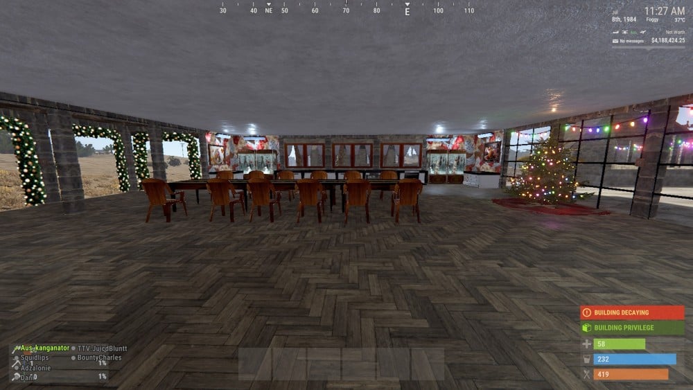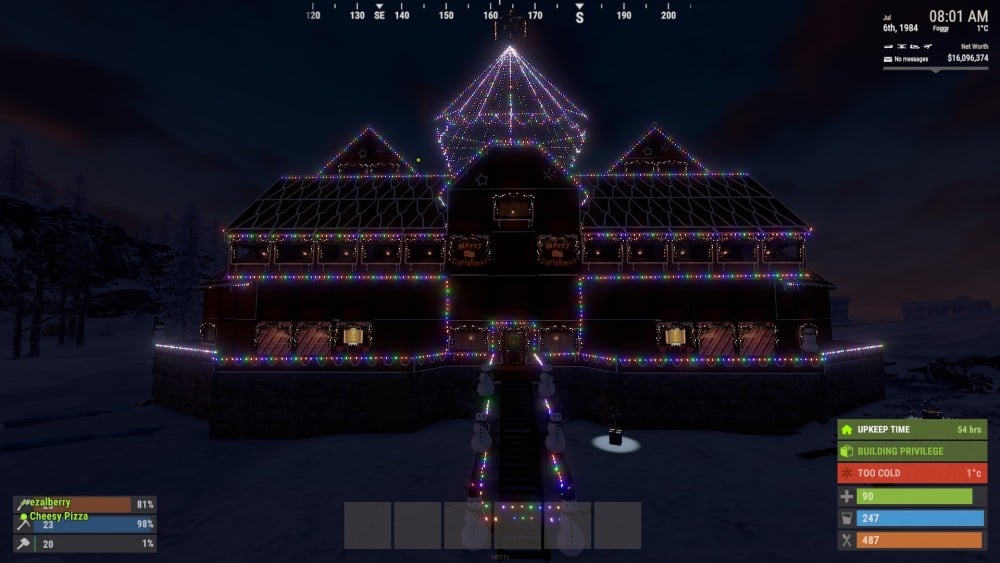 Your in-game name (note if you're an admin) - ThomasRET The server your Rustmas build entry is on (eg AU-Survival) - US Elysium The map grid ID location of the build (eg bottom right L24) - H1,9