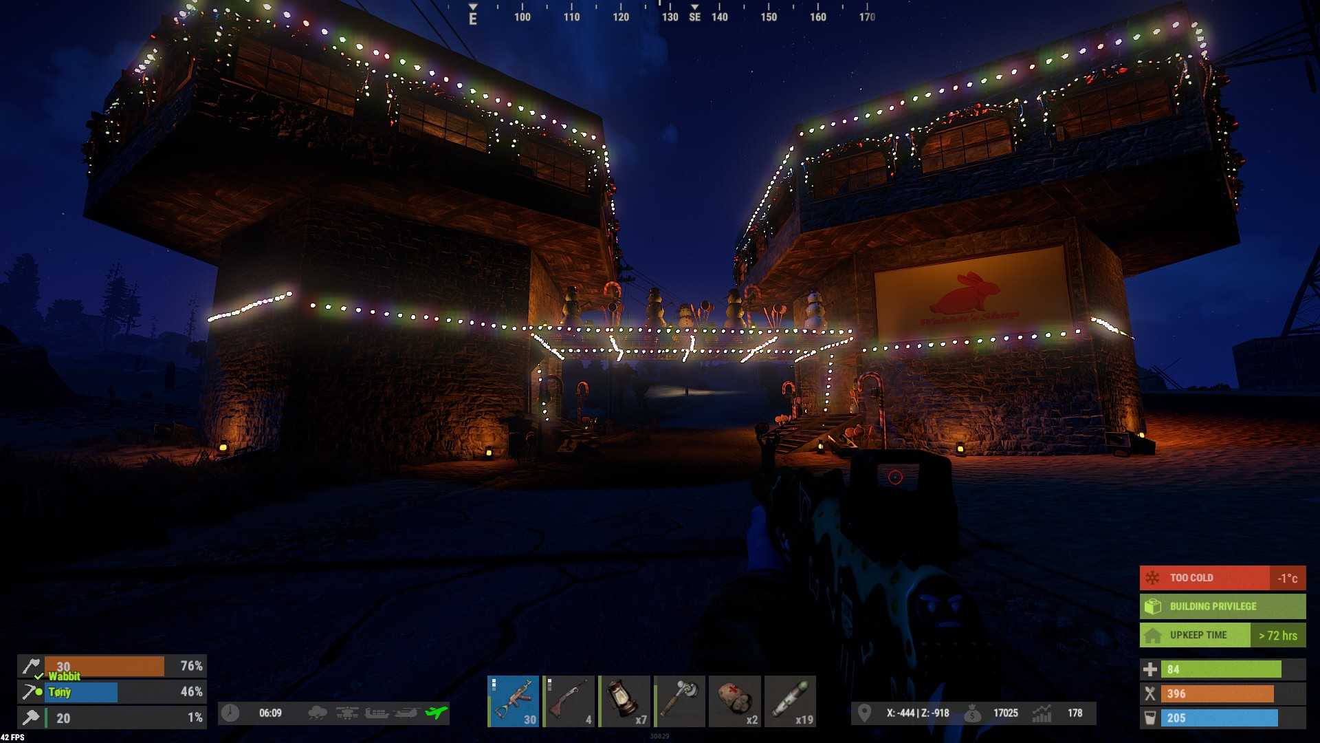 Aurora Posted December 8, 2018 Report Posted December 8, 2018 Get your hammer on! We're hosting a build contest for all players on the (US) Scourge server. Build an original winter or festive holiday-themed place and win prizes for next wipe. The build can be anything you chose: Your base, tower, a public shop, community center or any space you choose to create that has a winter or holiday theme. RULES & INFO: To enter, reply to this forum thread and include a screenshot of your build and provide the map grid location. Builds must be posted here by midnight (EST) Sunday, December 16, 2018. Admins will judge contest builds and host an event to tour the contest builds between December 17 and 19. Players must maintain the tool cupboard (TC) during the contest to ensure no decay prior to midnight (EST) on December 26th. PRIZES: Winner will be chosen by admin voting and prizes handed out to players during the January 2019 wipe. 1st place: $10 RustEZ store credit 2nd place: $5 RustEZ store credit 3rd place: 5 supply signals 3 7