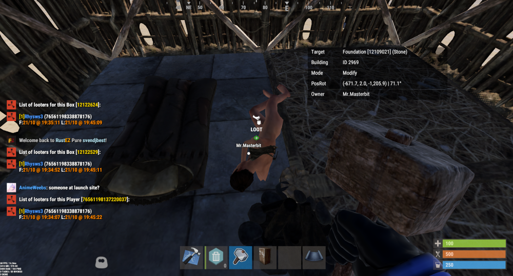 14. We'll be making changes to accommodate our ever-expanding community to improve overall server performance and most importantly, the player's experience. We'll be making these changes slowly over the course of several months to prevent new issues from developing during these transitions. This Wipe 1) Map size will be increased from 4,000 to 4,500 to help spread entities and provide more plots later into wipes. 2) The cooldown on homes will be increased from 5 minutes to 30 minutes in hopes to prevent players from wiping out monuments. 3) Loot room camping will no longer be tolerated. Anyone found sleeping in loot rooms will be moved out accordingly This goes for loot spawns at monuments as well. 4) Upkeep cost will be increased from 25% to 30% to further prevent massive structures and provide a better resource economy. 5) Players who do not log in for longer than 3 weeks will become marked as inactive and purged to free up server and client resources that can be utilized by active players Hundreds of commits have been made this month to improve both client and server performance, maximize data storage efficiency, and allow our server to handle more players at any given time. This wipe we'll focus on balancing loot tables, stack sizes and everything in between to provide the best experience and performance possible. If you have any feedback we'd love to hear it in our feedback and suggestions thread!
