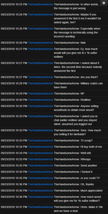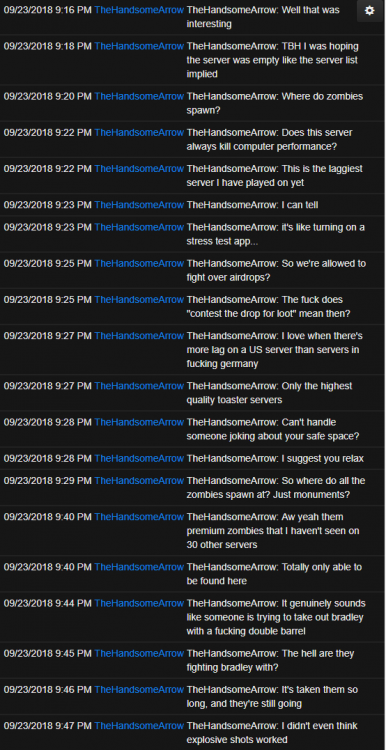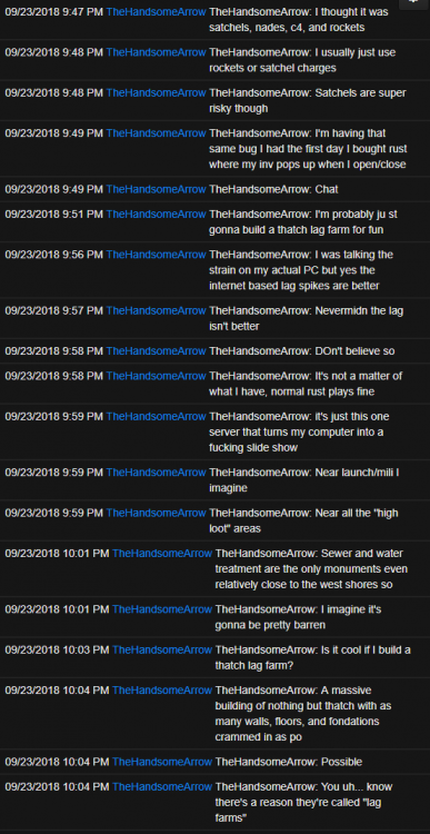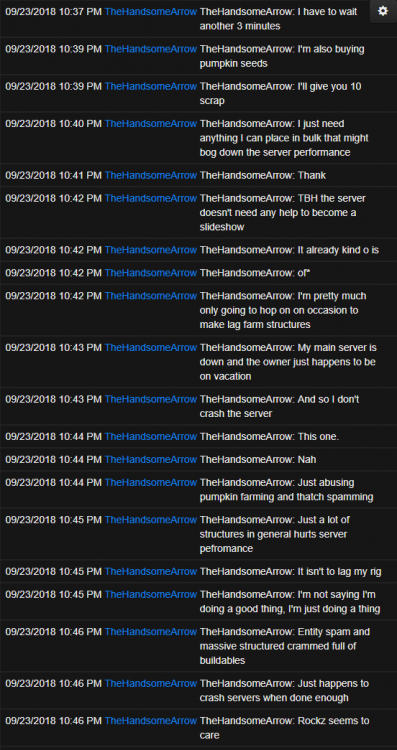3. Recently we've been battling some pretty serious issues from prefab errors, RPC disconnects and some entities not allowing interactions so today I spent the majority of my morning going through all the errors and destroying any entity that returned the wrong prefab ID. Because of this, all recyclers, pumpjacks, cave lifts, and puzzle switches/doors have been removed. I went around and manually respawned most, if not all, monument recyclers and pumpjacks while also adding them to monuments where they do not belong to help out noobs. If there are any missing or in the wrong location let me know so I can address it. Also, if you come across a cave exit with no lift let me know so I can respawn it. Bandit town shops are now fixed, recyclers are once again interactable as well as industrial doors. I am not concerned with the remaining prefab errors as it'd cause more harm than good trying to resolve. Everything is in working and stable condition as we slowly limb to wipe day. If you're missing a pumpjack or recycler drop me a ticket here: https://www.rustez.com/help and I'll get it sorted ASAP.