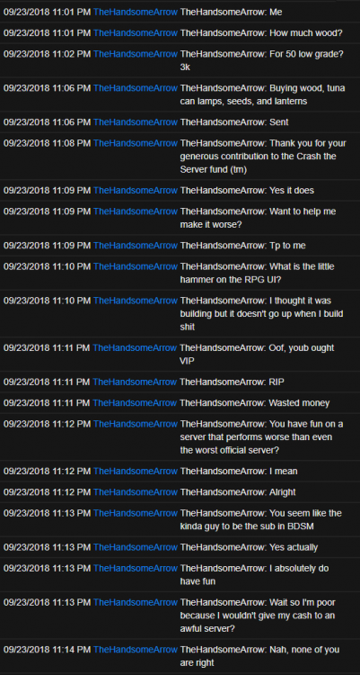 1. Offender: TheHandsomeArrow (steam) (394241138) Time: 12:00 PM EST Length: Permanent Reason: Toxic behavior, threatening to crash/lag the server Proof: