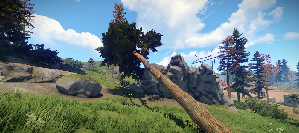 New mini-game and animation for trees A new mini-game for harvesting trees will be added today as well as a fall animation when harvested to further improve the look and feel of the game. Trees can also be knocked down with the use of explosives and Instead of glowing orbs for the mini-game trees will be marked with an X which grants yield bonuses for participation. Improved Build Zone Changes to building zones coming later this month that works by associating interlinking foundations with a single cupboard emitting the build zone which allows players to block off an entire base using just one tool cupboard. Rocket Factory Progress Several rocket factory improvements coming this month such as improved textures, lighting, LOD fixes, as well as new room additions and more parkour courses to explore. Other Changes Hair Fixes EAC Update Navmesh tweaks Collision fixes View full news