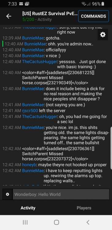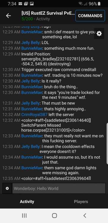 US SURVIVAL Geri_Atric BM Steam 12-30pm pdst Toxicity to players, and admins over the firework bug, continual berratement of staffs "apparent lack of interest in the firework bug" Geri_Atric: fuck it Imma just going to go blow shit up 10:39 AM Geri_Atric: this server is the worst server ,thety dont give a rats ass about the playersd 10:40 AM Geri_Atric: just take the money and then when s=hit dont work . blame it on somthing else 10:41 AM Geri_Atric: the people that "run" ity don't want to talk. cause they all know I am righjt. all I get is a bunch of bullshit 10:42 AM Geri_Atric: I go to facepunch, facepunch says server isse. I go to server , saerver tell me its a facepunch isseu 10:42 AM Geri_Atric: so they are bo=th a bunch of lieing fucks 10:43 AM Geri_Atric: but if a chain link fence despawns they can fix that, that ngoed to top fucking priority 10:44 AM Geri_Atric: OH FFS you think I an new? 10:44 AM Geri_Atric: you havent read above? 10:44 AM Geri_Atric: FFS I have beeh to fucepunch over this 10:45 AM Geri_Atric: dont tell me to calm down 10:45 AM Geri_Atric: you litlle punk 10:46 AM Geri_Atric: f maybe you should STFU 10:46 AM Geri_Atric: not you tx 10:49 AM Geri_Atric: well iof you don't want a responce to what you type don't type