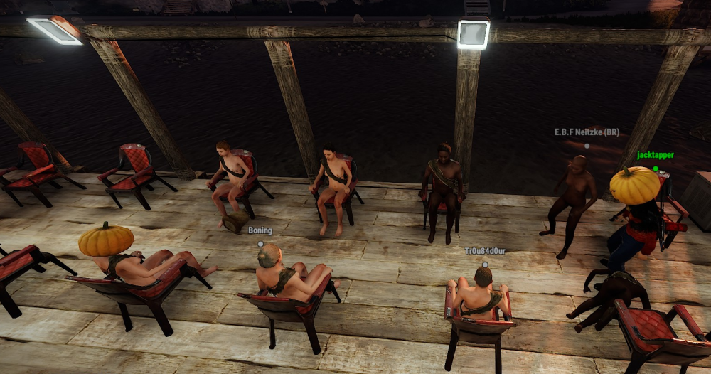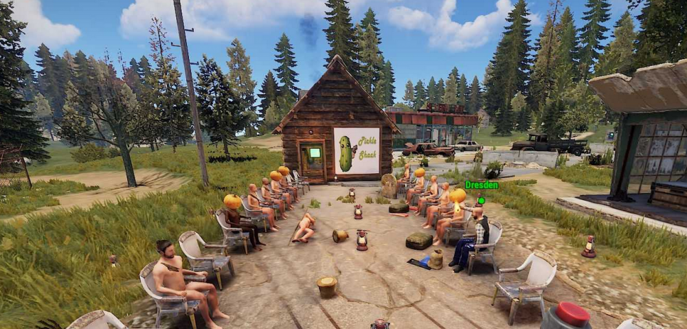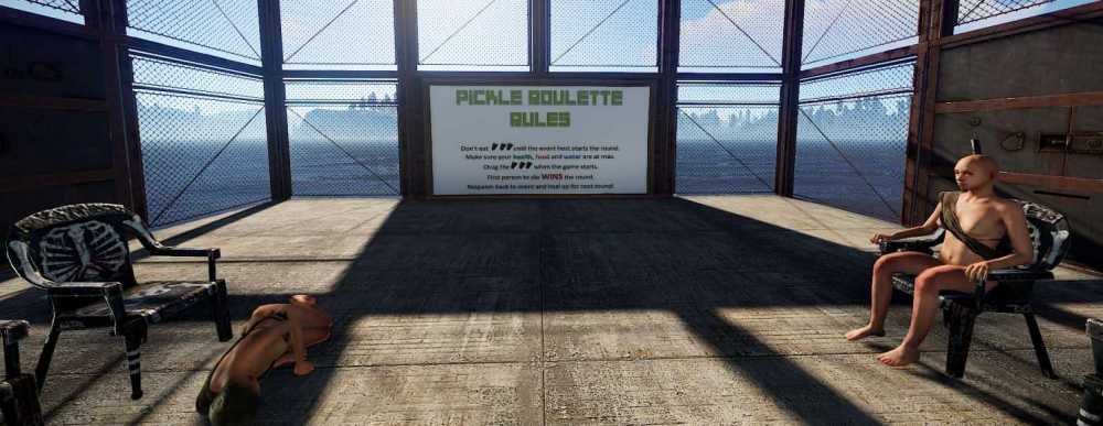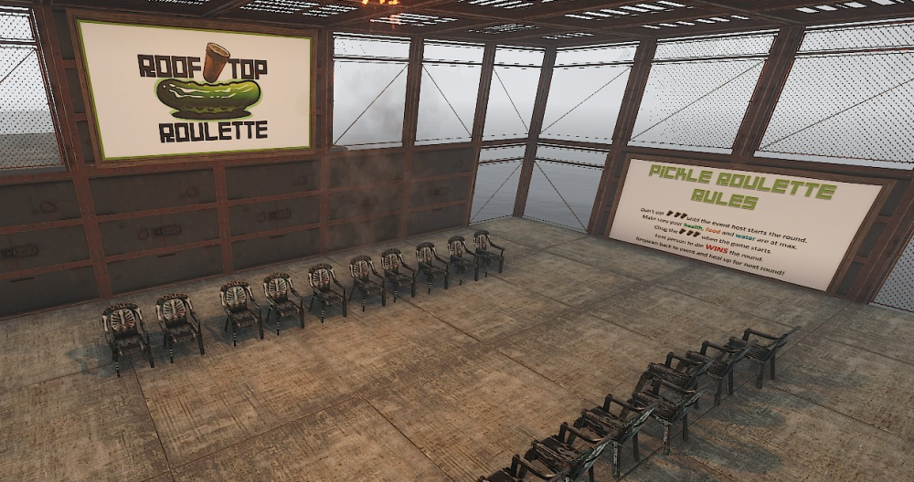 Pickle Roulette is a fun US Scourge event where players gather to eat, puke, die and win prizes. Prizes are in-game awards, ranging from obscure items to valuable pieces of gear. In other words, winning and what you win is totally random. The only thing that is certain in Pickle Roulette is death. Note: Please turn In-game sounds on to truly experience this event. *BLEH* How The Event Works: Players join the event with an empty inventory and no access to backpacks. The event host will provide participants with pumpkins and med supplies to bring player's health, food and water to max levels. When ready, each participant will take a seat in Pickle Row and be given a stack of 50 pickles to place in their hot bar When the contest starts, participants chug down the pickles as quickly as possible. The first person to die WINS the round. Everyone then respawns back to the event and heals up for the next round! Fun fact: Pickle Roulette started on US Scourge during a Halloween wipe. Admins used Pickle Roulette as a way to harvest player skulls to craft skull fire pits. Admins managed to keep the motives behind the event concealed for some time – in fact they crafted hundreds of these "specialty seasonal items" before event participants caught on.
