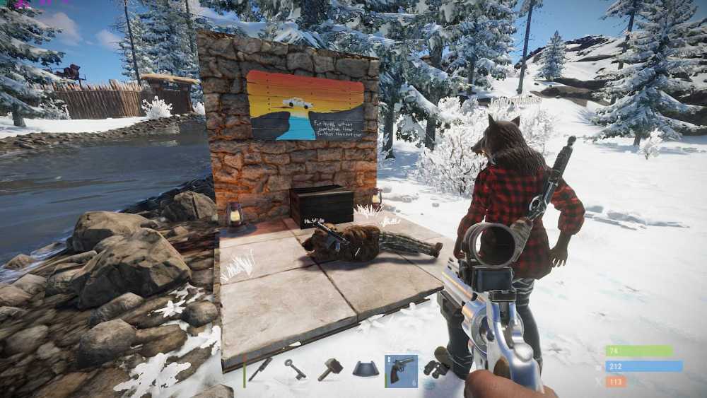 12. Vin and I have been having a blast (pun intended) with garrisons. We especially love that an enterprising raider can put down a TC and relieve the building of its deployables in a fun little race until everything decays. So I have two suggestions: Make it more of a "lived-in" base with diversity in its deployables- maybe a lvl 2, maybe a generator, and of course some pookies! Beyond acting as decoration, this would maker things more tactical as you would want to preserve certain things like a workbench from splash damage. Minicopter hangar / boathouse / horse barn- this fits with the theme of making the garrisons more lived-in, but also offers the possibility of some loot that you simply can't get anywhere except from the black market or monuments. I'd be so psyched to have a way to get minicopters again other than scrap or caps. Or even just get a horse to ride off into the sunset with after taking the loot.