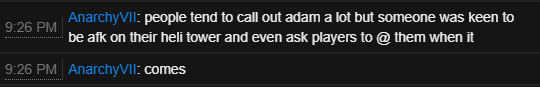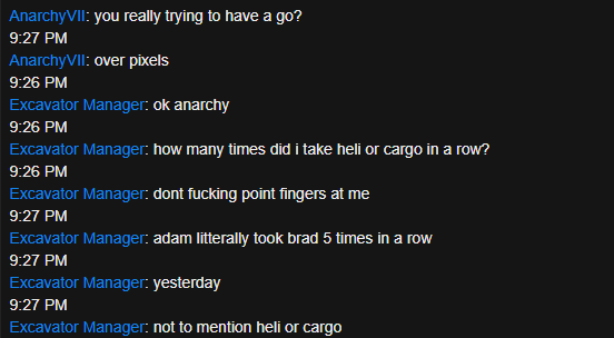 - Cargo event spawned in, took it upon himself to "call out" another player via Global chat (harassment), in doing so I had made a comment about his reaction to a player not even present.