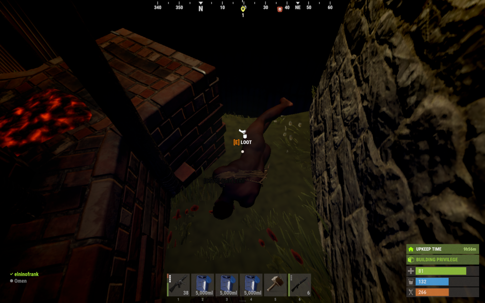 2. As I am new to rust so my building skills are still of a noob. This guy infiltrated my base and tried to steal my items. But due to his karma he got stuck on my base lol. Although I am not angry about my stolen items but I am reporting him just so that other players don't have to experience this kind of theft and have bad experience in this server. Admins please take action on him accordingly. His character is still stuck inside my base and is sleeping.