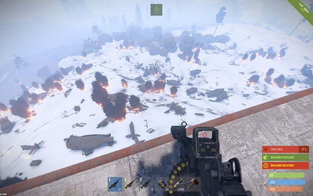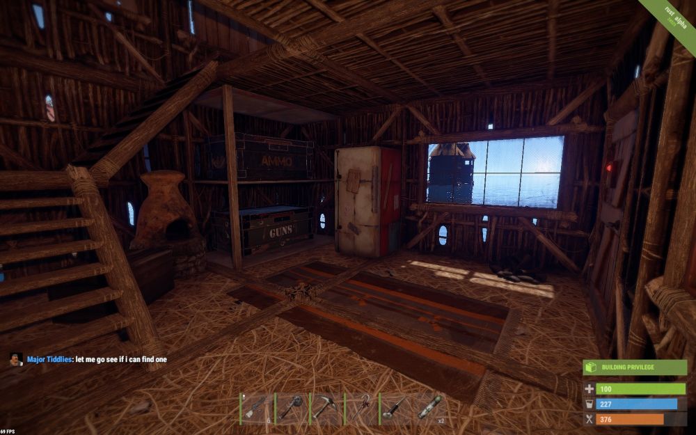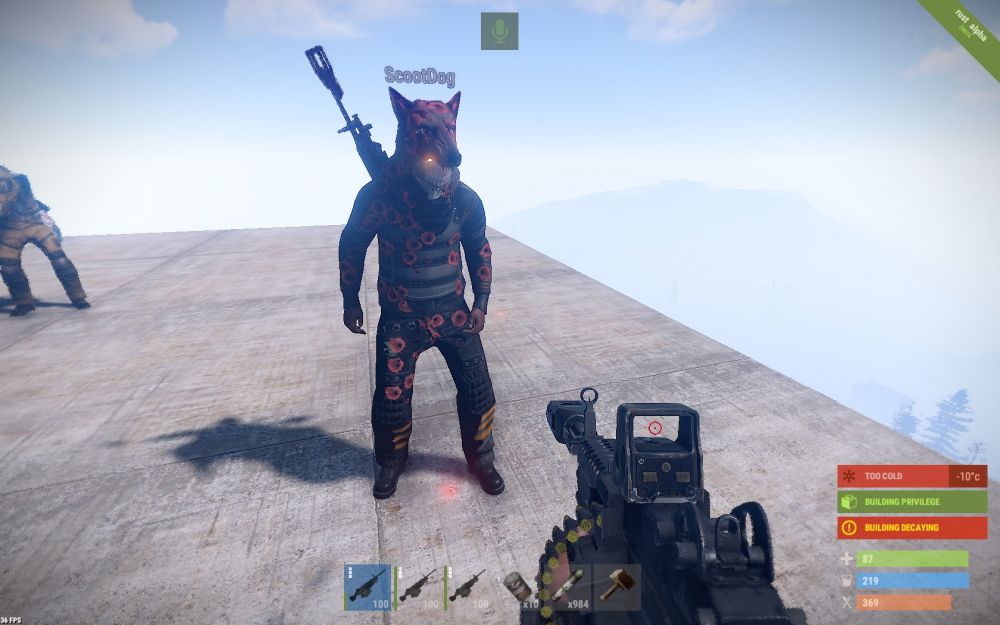 I'll add my experience to this; i actually checked into the forums hoping he had been banned already. My run in with him was last week. I have a shop with lennyz that is right beside Mudd's heli tower, O8-O9; we built there first then his tower appeared soon after. After Mudd and his base mates bring down the heli, lennyz and I run outside our shop to fly a balloon that is sitting between our shop and the heli wreckage. I begin repairing it and Mudd leaves the heli wreckage and runs over to us. He says "are you repairing this balloon?" I replied "Yes, is it yours?". He said, "NO but i want it now". I said, "Well you can't have it, we just now claimed it." So he pulls his salvaged pickaxe out and begins damaging what I've already repaired. So then i look up to put fuel into it so we can get away from them; but when i look up, he runs back into the doorway and looks up like he's trying to see if fuel is in there; i suspect he was going to try to steal it. I ask him to back off and leave us alone. So he starts cursing me saying things like "why do you care so much about a f**king balloon, it's just a god-d**ned game!" I respond and say "yea it is a game" and then i stand in the doorway so he cant get in or look into the fuel container. He walks away just a few feet, we repair it and put fuel in and start to rise into the air. He runs back under us and says "Enjoy your balloon!" So I say, "Thanks we will". Then he says "F**k You!" So about 30 minutes later, we land our balloon back at base and lennyz logs off. I stay on to craft things to refill our vending machines. Mudd was running his mouth to someone else in chat and he typed "their" instead of "there". So i typed "*there" which i admit was stupid to do but i was still a little upset over what just happened before. So Mudd types "F**k You!" and comes over to the shop and starts yelling at me from outside the walls; he is cursing me and saying things like our items are too expensive and why would he pay such and such scrap for things he can get free in a loot barrel. I ask him to leave and he wont so this is when i asked Ramen to intervene. I explain the situation to Ramen and then he asks Mudd to leave and stop harassing. Mudd of course argues with Ramen, starts complaining about our prices and keeps running his mouth; he also says this is Rust and i shouldnt be crying over being cursed at. I told him this is Rustez PVE and we dont treat each other like that. Ramen eventually tells him to leave and he does reluctantly. I thank Ramen and he teleports away but just a few minutes later Mudd returns and i hear him tell his friends that he is thirsty and needs a drink. We have a box for freebies and a water catcher that is also free to everyone. i hear him drinking from our water catcher and taking much more than what is needed; i'm sure he intended to drain it completely dry. When this happens i tell Ramen what is going on and he said he was aware; i'm sure he was spectating Mudd. I run back outside and tell him to stop draining the water catcher; he argues with me saying he was thirsty and it will auto refill. i say, yes i know that but you are taking much more than what you need just to drain it on purpose. He ran off again when he saw that Ramen was monitoring him. i had to unshare the water catcher and freebies box because i felt he would do something after i logged off. Ramen eventually came back to my base and asked if i was ok and to let him and other admins know if Mudd kept harassing me. I thanked him for supporting me. The next day i was being shot at while outside my shop and the fire came from Mudd's heli tower. I ran to the road to loot barrels and he followed me over there and kept saying "Von, where are you? Von I cant find you, where you at?" while he shot at me. I ignored him and he eventually ran off. I have to give major props to Ramen, he kept his cool and helped me out but this is not an isolated event obviously. Mudd is cancer to Rustez servers and i vote him to be banned.