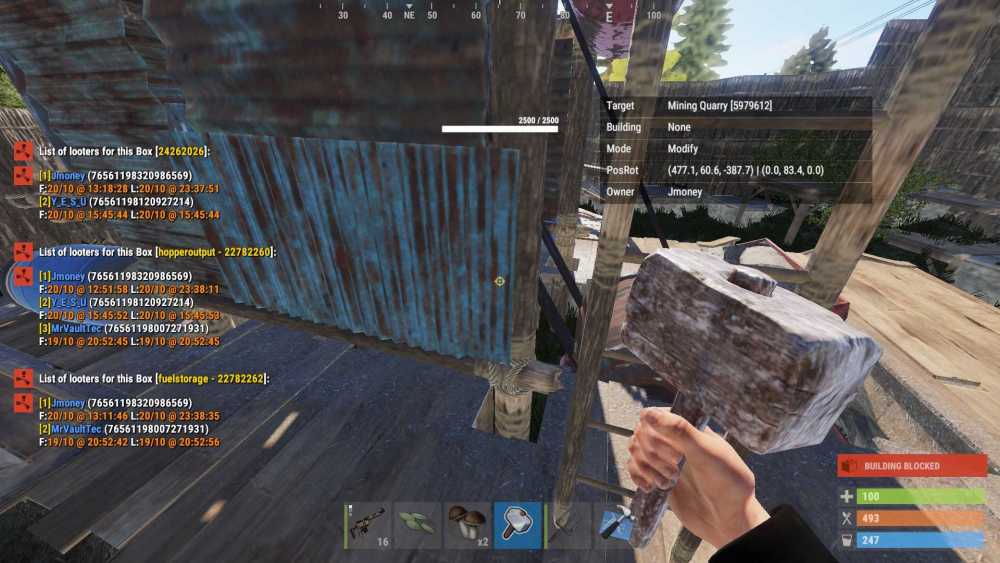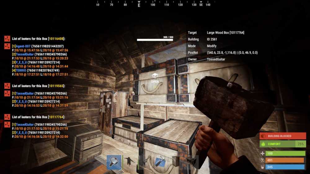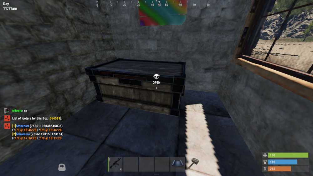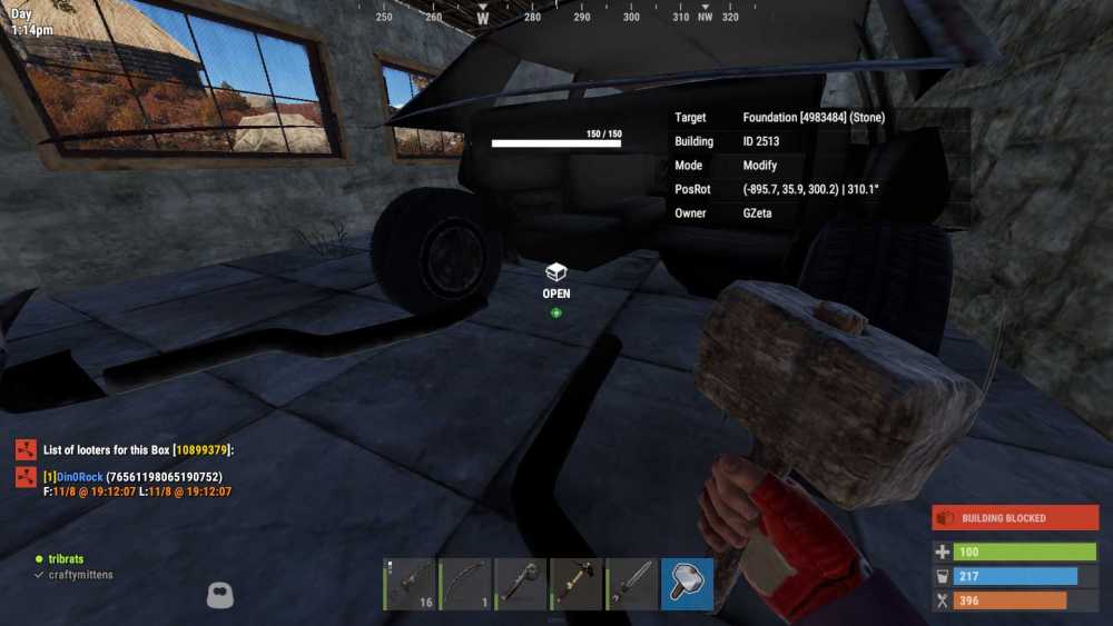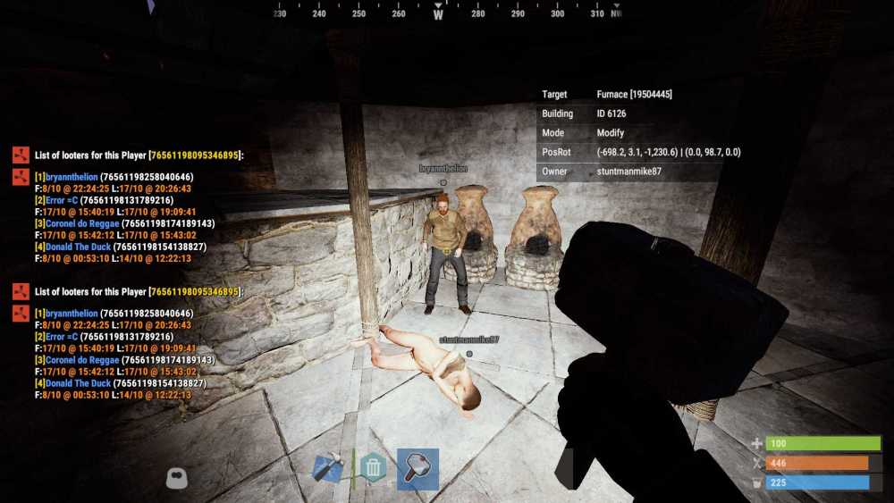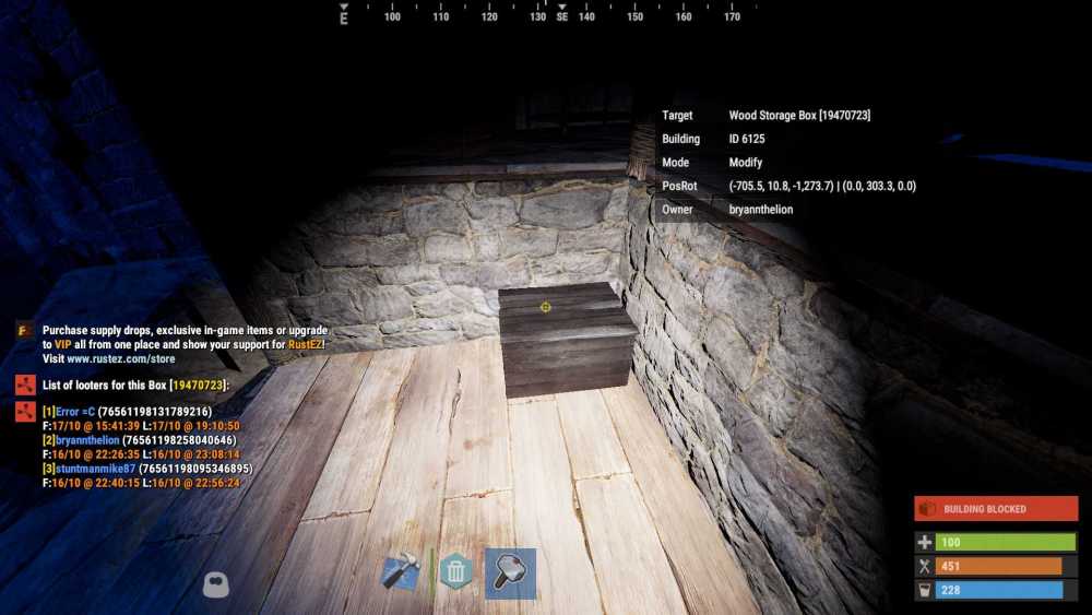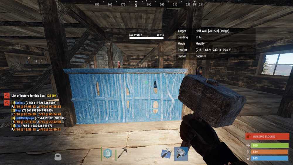 12. Offender: badim.v (steam) (97085281) Time: 2:55PM EST Length: Permanent Reason: Raiding, Looting, Griefing Additional Info: Player used vending machine to jump into the base. Cleared tc and authed themselves. Built stairs to reach other floor. Looted sleepers, chests, etc. Proof: