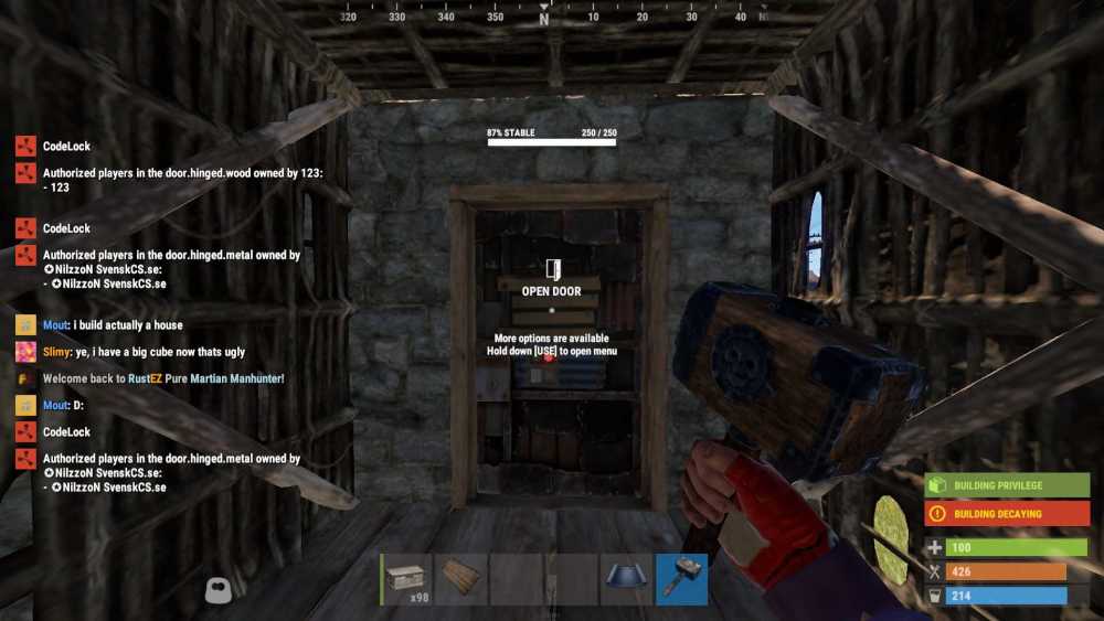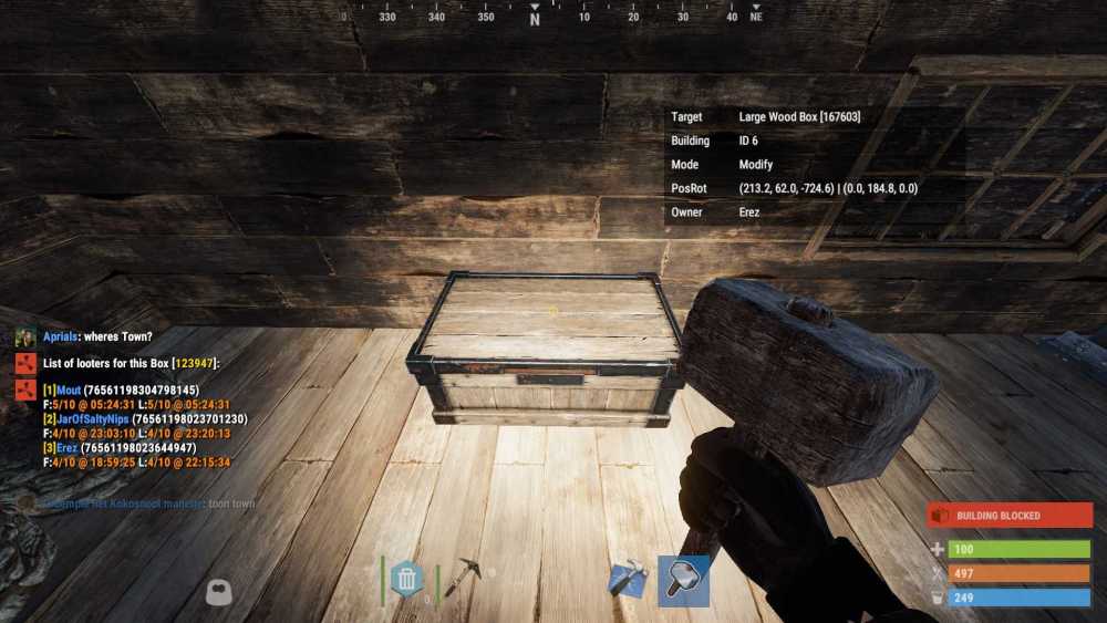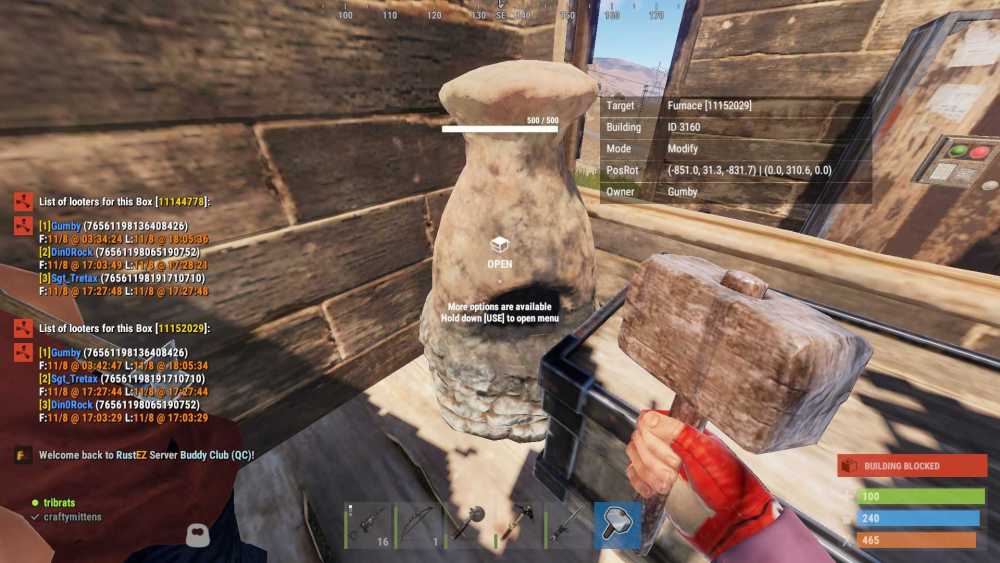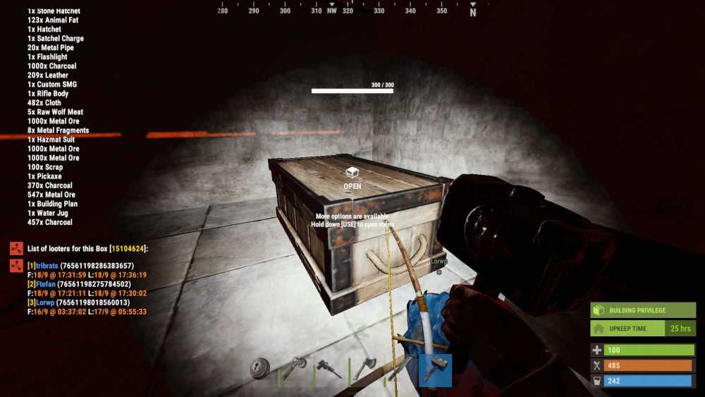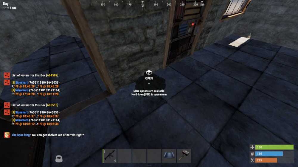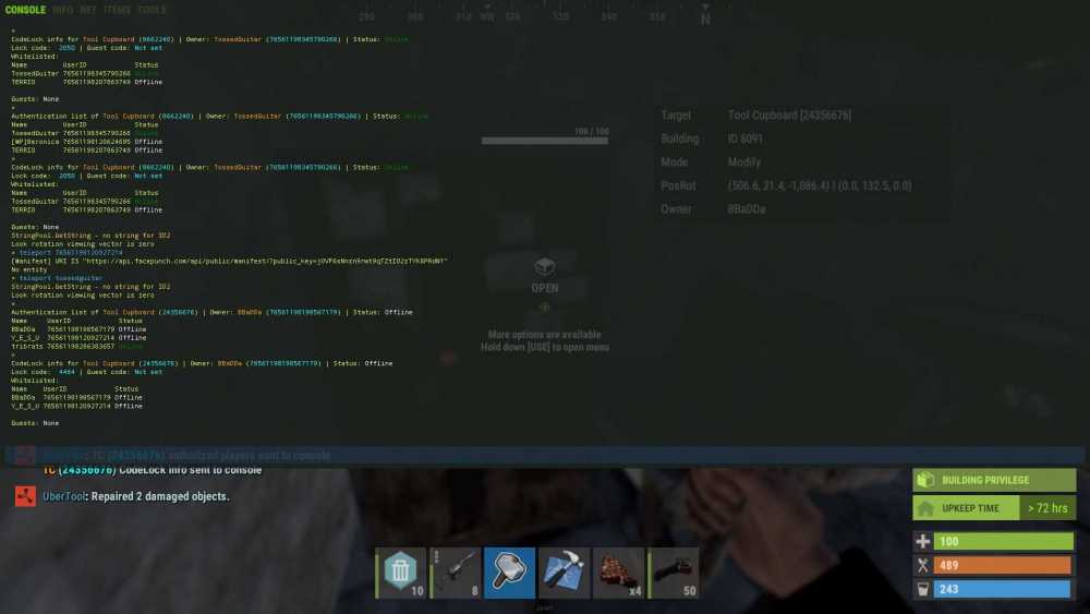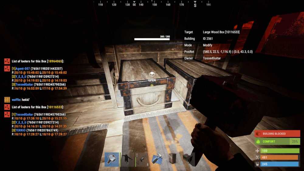12. Offender: badim.v (steam) (97085281) Time: 2:55PM EST Length: Permanent Reason: Raiding, Looting, Griefing Additional Info: Player used vending machine to jump into the base. Cleared tc and authed themselves. Built stairs to reach other floor. Looted sleepers, chests, etc. Proof: