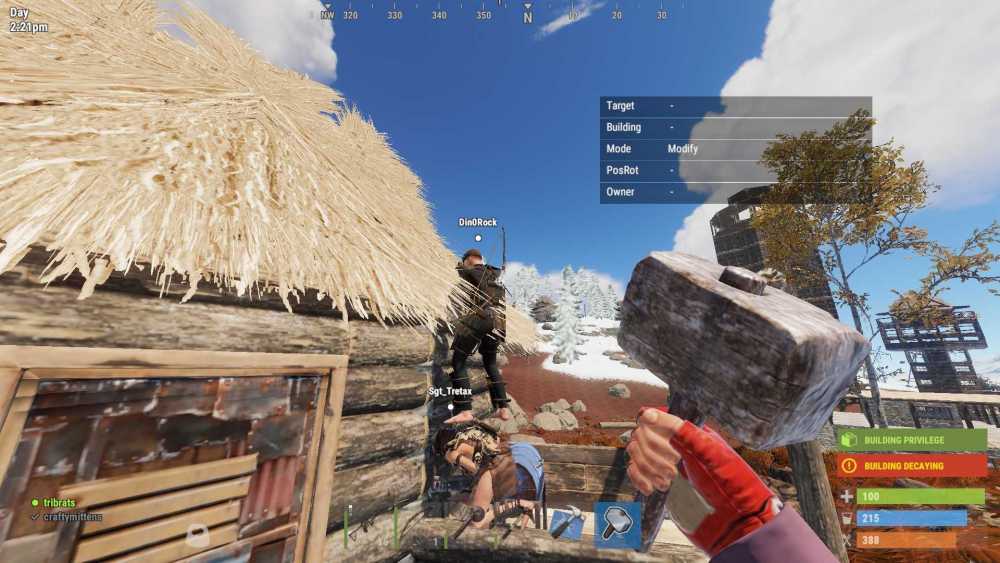 18. Time: 9:55pm (est) Length: Permanent Reason: TC Raiding, Griefing Additional Info: Witnessed by 2 admins. Used an external tc placement to gain access to a roof by twigging up and jumping from a hill. Proceded to break a roof tile to gain access to the base. Prior to admin arriving, they had griefed the door shut with their own foundation/door/lock. Player was confronted after they entered. They then F1 killed and respawned. They again F1 killed when confronted a second time then logged. Proof: