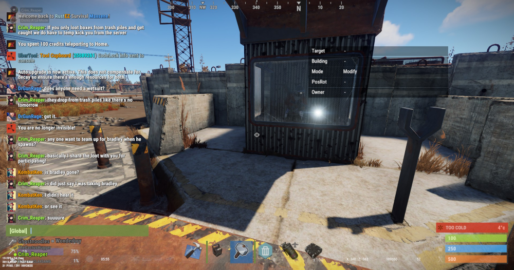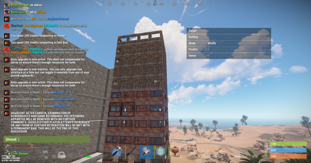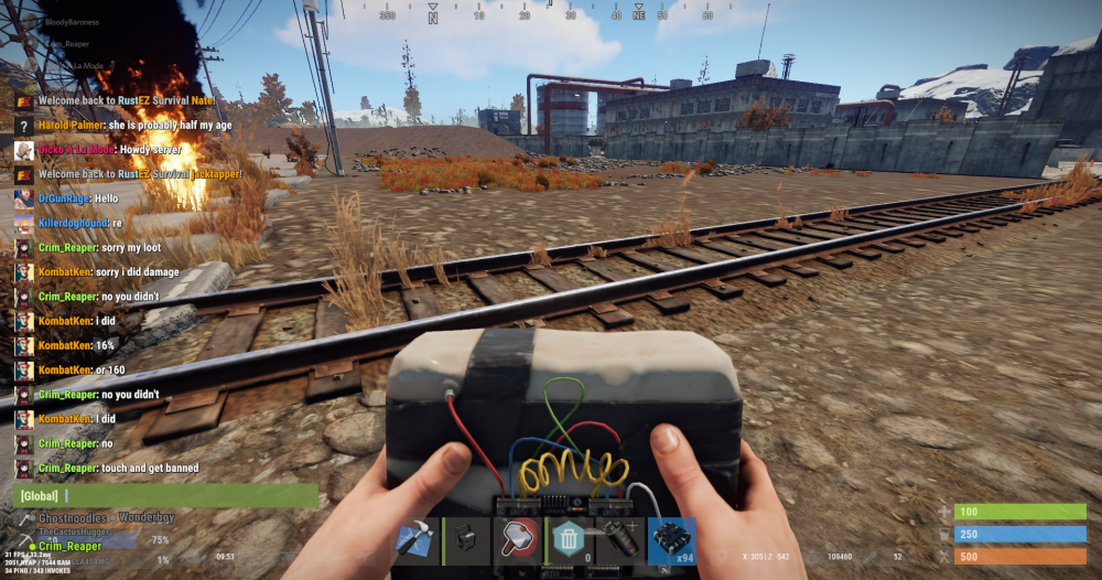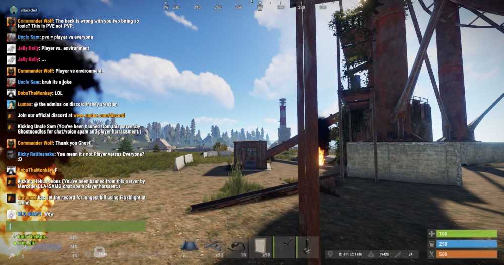Battlematrics Steam Offender HodgePodgeMedia Server U.S Survival Time 1.00am gmt Reason player was harassing other players and refusing to leave one players base. He then proceeded to not leave a players shop and also shooting them. then they escalated things via chat.