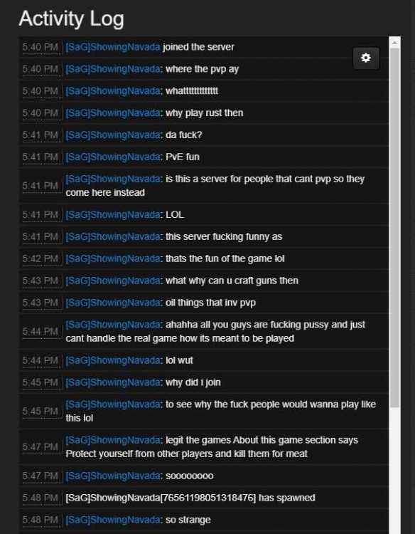 Offender: [SaG]ShowingNavada BattleMetrics Steam Server: AU Pure Time: Saturday 11th April 7:49am UTC Length: 1 day Reason: Being rude and argumentative More Info (Optional): Logged in and immediately complaining about the server being PvE. Being rude to players. Received a kick from another admin, only to log back in immediately and continue complaining.
