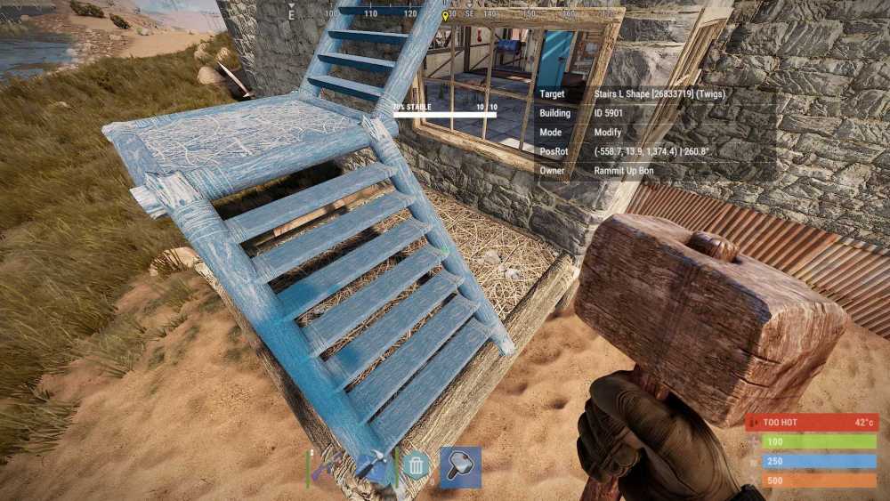 Offender: Rammit Up Bon Steam BattleMetrics Server: AU Pure Time: Friday 28th August 2020 @ 11:08am UTC Length: 7 days Reason: Raiding and ignoring an admin. Player caught red-handed using external stairs to enter an open window on another player's base. When confronted, He refused to communicate, instead running around me like it was funny. He had previously stolen a base, and all contents, from another player.