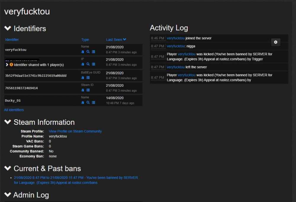 Offender: veryfucktou Steam BattleMetrics Server: AU Pure Time: Friday 21st August 2020 @ 10:47am UTC Length: permanent Reason: Racism. Said 1 word, autoban got him.