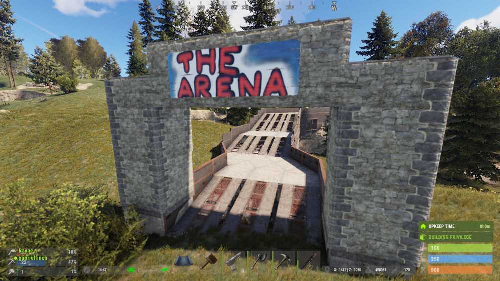 All month long The Arena is open to anyone with a ground vehicle! We will be hosting races, demolition derbies, & The Rusty Rocket Lea... uh... Group games. That's not all, however. The Arena is open to the public for the entire wipe! Enter at grid F21!