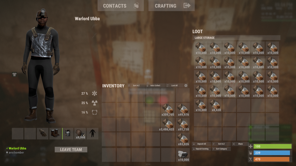 12. Wiping mining and wood cutting levels in a modded server is unnecessary, especially with an XP system. I propose 1 of three things to fix the massive annoyance (my personal position about the subject) of having to (every third wipe) start all over bonking rocks and nodes for marginal benefit. That is, 1% per level is minimal and marginal. If you mine 10 stone nodes at level 0 you get 10,000 stone (I think, not totally sure about level 0 loot) If you mine 10 stone nodes at level 99 you get 19,900 stone. (99% increase at level 99). To get to level 99, it takes many, many, many, many, many hours of endless node smashing, even with the bone club method. 1. Increase the reward per level for all levels about 50 ex: At level 0-49 you get 1%... At level 50-75 you get +2%... At level 76-99 you get +3% For a total of 168% boost. 2. Add a Mining and Wood cutting level boost, which costs Net Worth ex. Red Bull power up that gives you (hypothetical numbers, I don't now the XP levels) +1000 wc and + 1000 mining ex. ex. Power up for wood cutting as it's own entity, power up for mining as it's own entity (1000 xp each, but separate items). 3. Don't wipe levels in the traditional third rotation way. People active in the wipe have spent a lot of time (likely big bucks) to grind net worth and play on the server. Their levels could be maintained through the wiping of everything. Every wipe a person doesn't play (or every 2nd wipe) their levels get sent to 0. The reason for this again, is that it is significantly inconvenient as a grinder on the server to have to do nothing for an entire wipe but grind mining and wood cutting levels. Literally. Sitting at the PC smashing nodes to prepare for another wipe isn't ideal. Hopefully others agree.