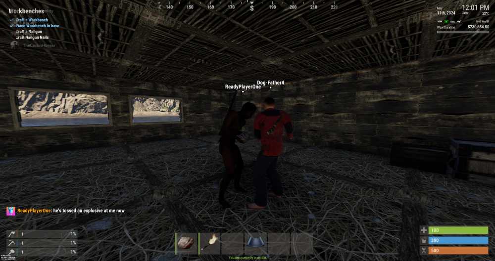 Offender: Dog-Father4 Steam ID: 76561199088661588 Battlemetrics: 963445994 Server: US Survival Time: 1032 AM HST Length: Permanent Reason: Harassment and entering player bases Other: Player was running around and yelling at other players unintelligibly through his muffled microphone. A mute was issued by admin Rayne. Player was then reported by several players breaking into their bases. After forcefully teleporting the player away from one of these instances and issuing a verbal warning, player then returned to the same base and tried to enter once more.