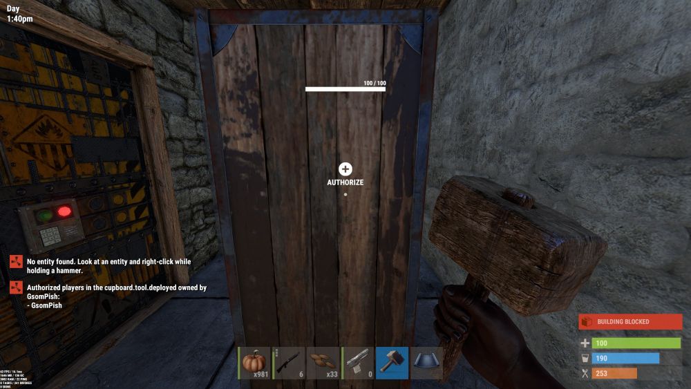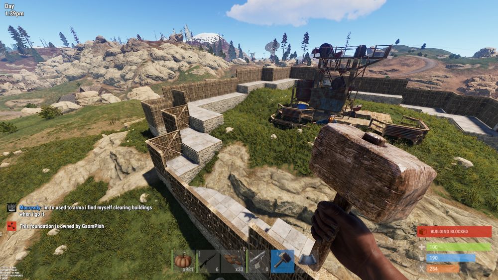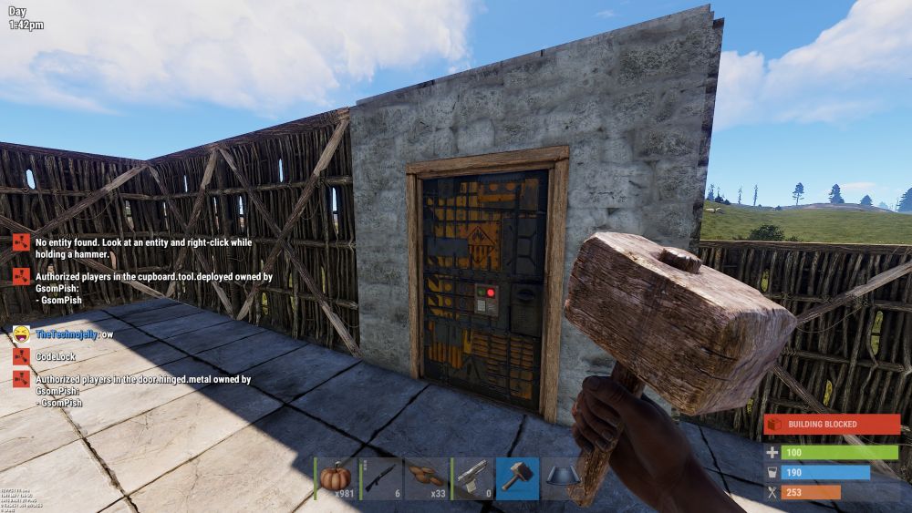 Time: 1950 EST Reason: Looting/Griefing Length: Permanent Server: Pure PvE More Info: This has been a problem player for a wipe or so now. He placed an inappropriate sign on a players home once and was warned. He has also seen and continued to be seen on random loot logs even after being warned for that but could never pin anything directly to him. Today, two players notified us that their quarry was completely walled off. There was no access to their quarry and Gsom also placed a TC down and code locked the doors completely preventing access to it.