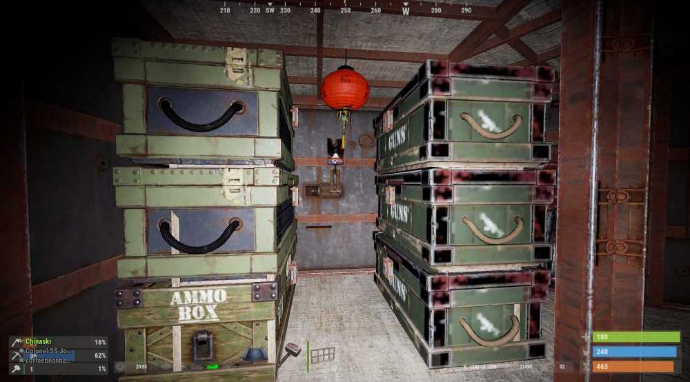 My base mates are CoffeebeanBailey and Colonel Comy. Neither of them would ever do anything as egregious as the player that did this. We work together as a team, sharing everything. Yes, that player went in every one of my boxes and despawned everything. They left me with a total of one half full chest of crap like stone and wood and miners caps. I had 10s of thousands of HQ, Scrap, frags, GP, etc. Is Machete Small the player's name? I'd really like to know who did this so I can warn other players if I see them online.
