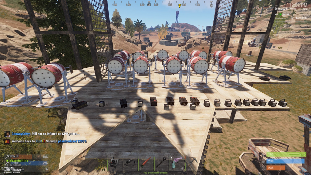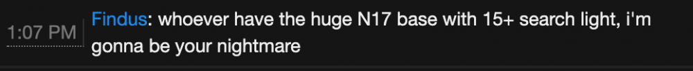 Offender: Findus (Battlemetrics) (Steam) Server: US Scourge Time: 5:28 PM EST Length: 1 day Reason: Griefing and player harassment More Info (Optional): Player took issue with another person's base that had spotlights on it. Instead of asking for an admin to take a look, they took matters into their own hands, building a huge tower next to the build. They then set up over 16 spotlights, set to flash on and off, as well as 10+ foggers, 10+ spooky speakers, 15+ strobe lights, all going off constantly. I lost count trying to make note of them all, and it took me over 20 minutes to find them all and turn them off.
