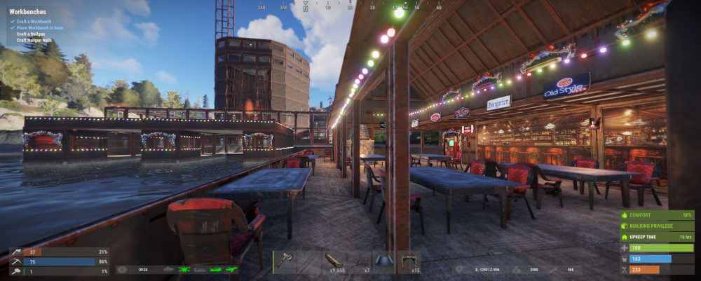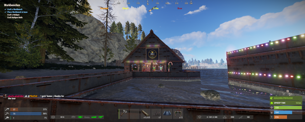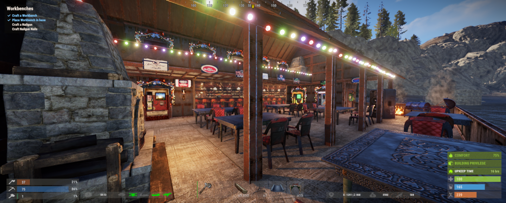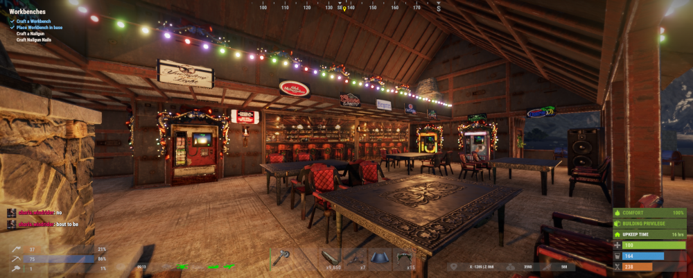7. ,i realize people like ME are one of the problem not knowing when to stop... so STOP me from building huge… just a suggestion , If possible could you implement a Building Level ?. Theres no decay on survival so people can build as much as they want . Lets say you had a building level attached to TC (not the players) that only activates OVER 50%build level ...and doubles at 75% and triples at 100% ,just like a level up or a certain barrier that would stop us who dont know when to stop and force us to work our quarrys and pumps harder to maintain our bigger tc base and discourage going over the top . This would not affect New players or those who build multiple( small and medium ) bases around the map cause the levels would be on single TC attached to one base ...This would allow people to use as much quarry level up or w/e as they want but use the mats from the quarry on building if they build Huge ..instead of selling in camp and flood economie … decay starts at 50% = (big base) ….doubles at 75% =(huge base) and triples at 100% = ( excessive build ) .. I know me and lots like me will continue to build bigger but this will slow us down on building and use our excessive resources and still have fun using machinerie , just an idea , thanks for you time