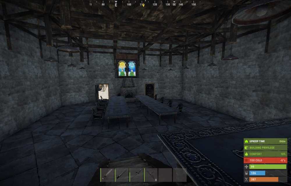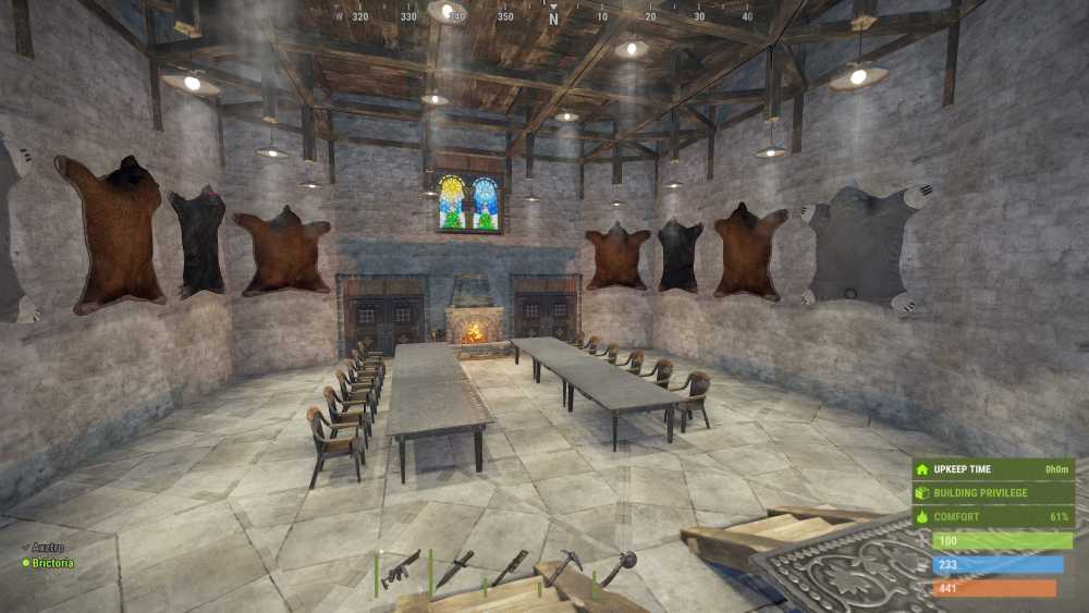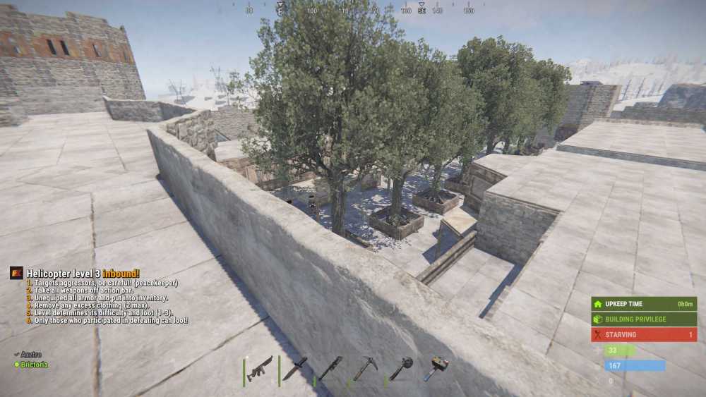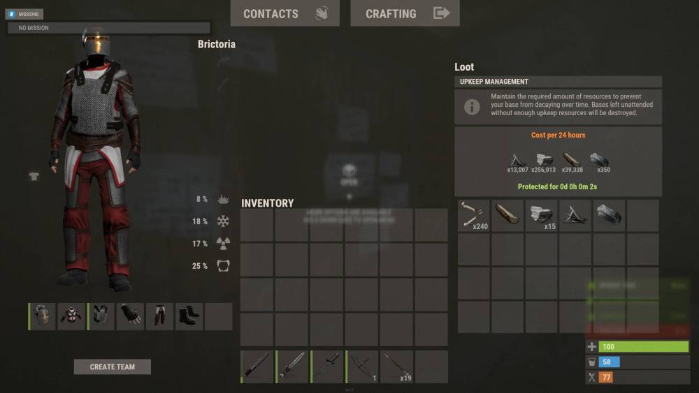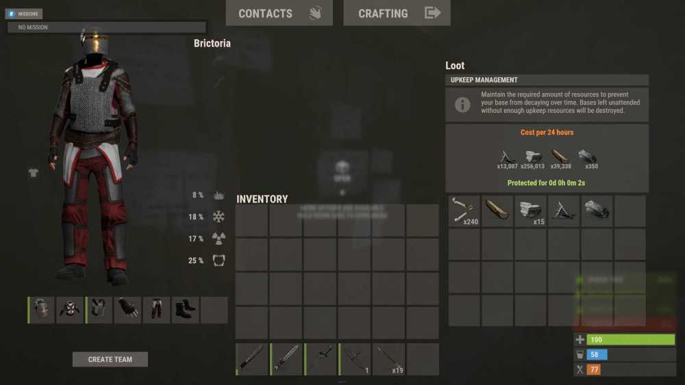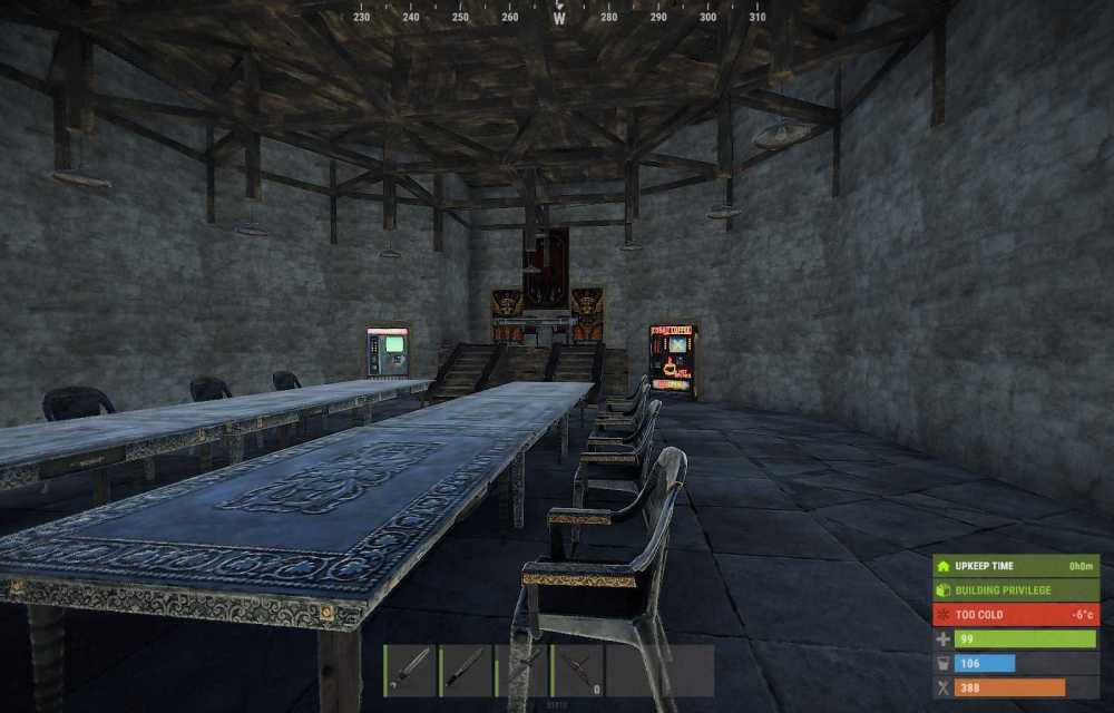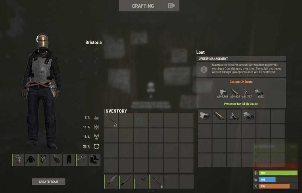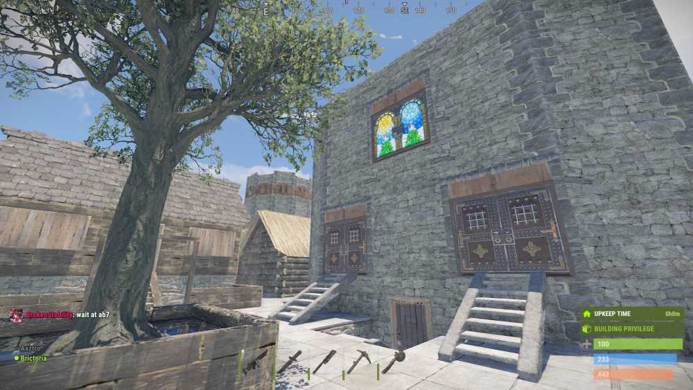 Using the same reasoning, why shouldn't players also be able to steal from others in order to get what they believe they need for "survival"? Stepping back, what makes up a "survival game": Is it the need to find resources to build a shelter and gather food? If so, in theory "upkeep" (repairs) might be needed for a base, but at the same time that would imply that the base should also be able to be damaged (raiding, for example) and people should be able (required?) to obtain what they need to "survive" in whatever manner they feel is the most efficient method. The "upkeep" (repair) mechanic serves little purpose without a reason that the base would\could be damaged and need repairing: On a PVP server, it serves to limit how much "protection" players can provide to the resources which they have gathered to help themselves "survive", providing the optional ability for other players to acquire what they need from these "protected" storage areas instead of scavenging junk piles, etc. for them, but what purpose does it serve on a PVE server where there is (theoretically) no "requirement"\ability for players to remove resources from another player's base like that, other than to turn the game from a "survival" game into a "resource harvesting" game?