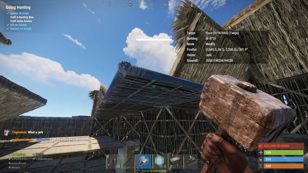 Offender: Jerk BM: https://www.battlemetrics.com/rcon/players/903939296 Steam ID: https://steamcommunity.com/id/Jerkuly/ Server: US Pure Time: 9:07am Length: Perm Reason: Raiding, Base takeover More Info (Optional): After witnessing this player jump through a window and steal items off a sleeper I spoke to them and they didnt listen so I sent a console warn informing them of our rules and that entering a players base and stealing items is against the server rules. After they stopped to acknowledge the warn they jumped through a window back out and went to another base put a accessed a tc and started to build onto another players base.