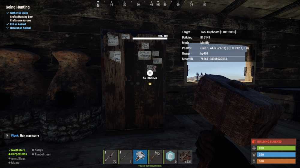Offender: hp401 BM: https://www.battlemetrics.com/rcon/players/292478242 Steam: https://steamcommunity.com/id/hp401/ Server: US Pure Time: 2:43am Length: Perm Reason: Raiding/Stealing from players and bases. More Info (Optional): This player was first verbally warned along with his teammate by another admin (Carpediems) about entering players bases through base exploits..sent them along informed of our server rules. hp401 and teammate nodded in acknowledgement and carried on down the map. At 2:13am I was dm'ed that a player witnessed 2 players boosting each other through, on and into bases. Noticed that they were being watched by the player who notified me they left for a short time circling back to see if they were still being monitored. I console warned them about the server rules. Upon further investigation I noticed that they were also gaining tc access, removing base parts to gain access , sleeping bags and other entities/deployables. The players base is filled with loot that was gained by breaking RustEZ rules and policies.