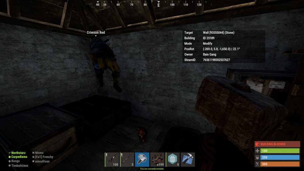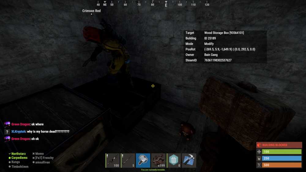 Offender: Crimson Red Steam ID: https://steamcommunity.com/id/senriu/ BM: https://www.battlemetrics.com/rcon/players/89491623 Server: US Pure Time: 4:39am Length: Perm. Reason: Raiding, looting sleepers, taking over a players base. More Info (Optional): After a verbal warning of the rules when I witnessed the player looting a sleeper. Then a console warn after he was taking items from players bases. Knowingly taking over a players base and laughing in VC about stealing the others persons base after reading the PSA about taking over player bases this player earned a perm. ban. They continued to build, lock and laugh about what him and his friends have done showing no remorse for actions done and no regard for the players or serve rules. More evidence upon request.