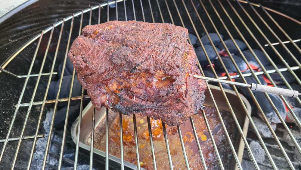 This one lasted more than 15 hours on the grill. (OK...temperature dropped over night, so it took much longer than expected.)