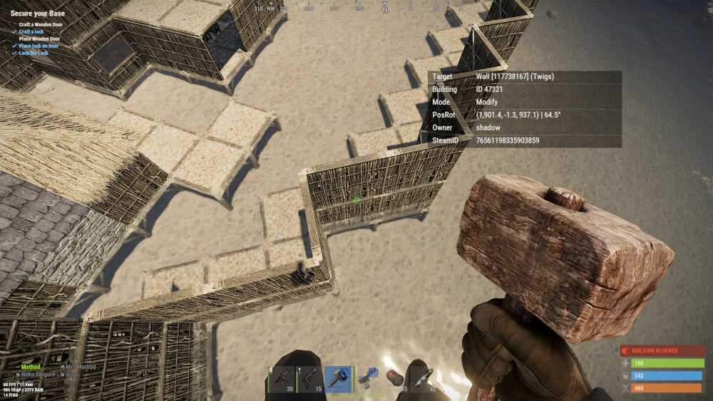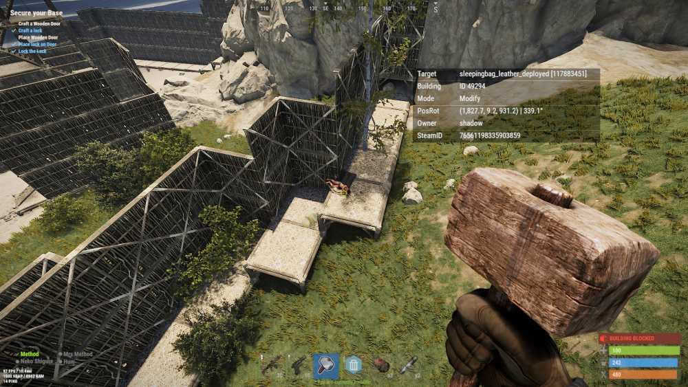 Offender: shadow ( 76561198335903859 ) ( https://www.battlemetrics.com/rcon/players/915358126 ) Server: EU Pure Time: 11.45am GMT Length: Permanent Reason: Looting other players bases, stealing helicopters and walling in other players bases. More Info : Player was given multiple warnings for running into players bases, then looking through boxes, then stealing, then stealing helicopters and culminating in deliberately walling in multiple players with a big twig build.