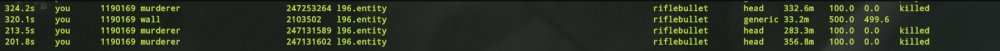 Players in AU Scourge have noted issues with kills over 100m not showing on kill feed, and some users also reporting kills that exceed scores on /top not being counted. Tested & was able to replicate both of these issues myself, but is not happening to everyone.