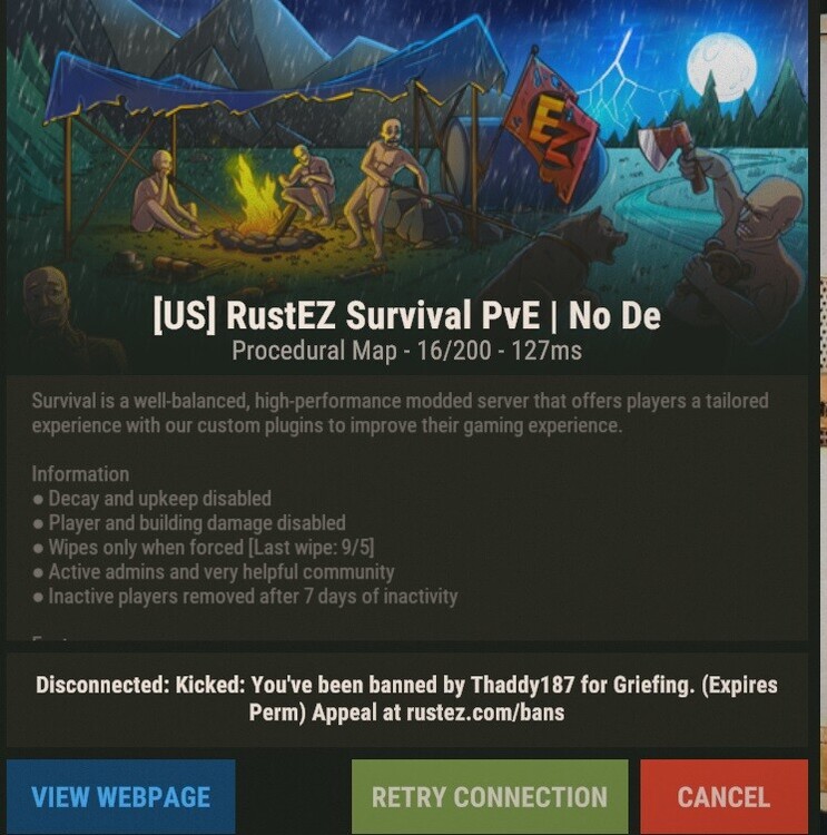Hi. Tried to login today. I'm still banned by Thaddy for Griefing as of this moment. Has this not been updated as of yet? -Tweets -