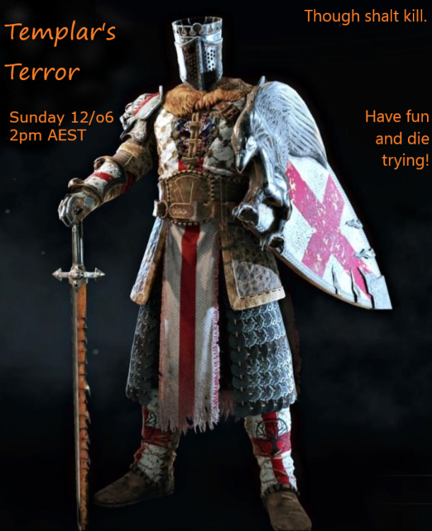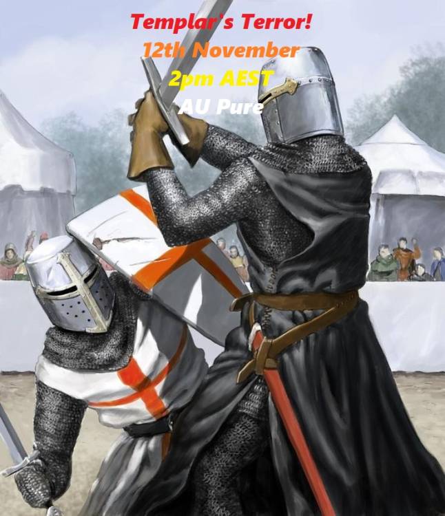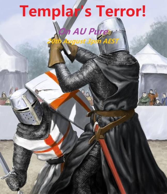 Templar's Terror! PVP Event on AU Pure. 12/o6/2022. 2pm AEST! Bringing the medieval back to a world where guns are gods. Melee weapons and satchel charges. Test your might against your neighbour. Have fun and die trying!!