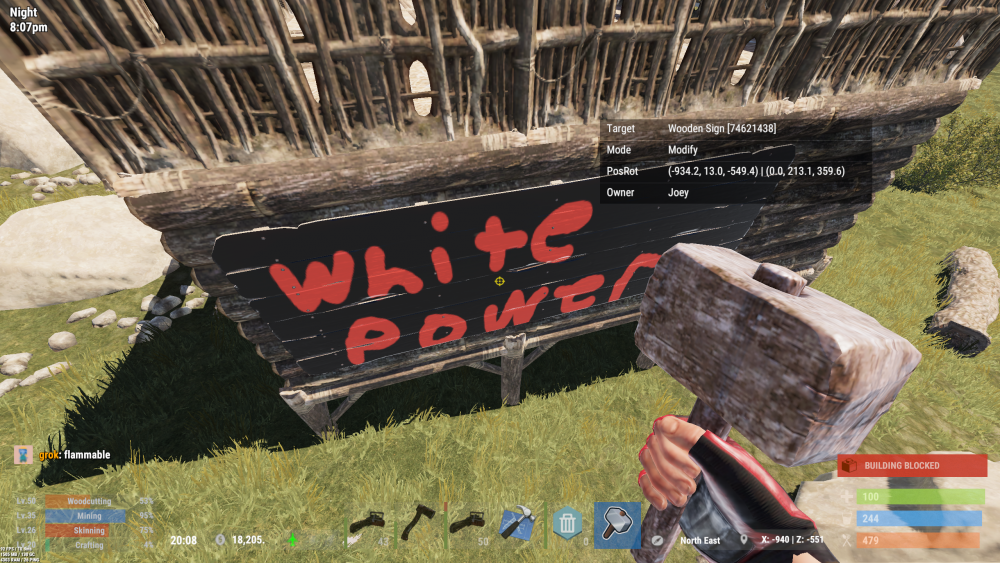 Server: Survival Reason: Racism Ban Length: Perm Notes: Player notified chat of this base, immediately took action. https://www.battlemetrics.com/rcon/players/571087755 SteamID: 76561197971068665